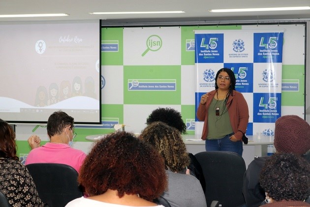 A coordenadora de Estudos Sociais do IJSN e da Pesquisa de Monitoramento e Avaliação, Sandra Mara Pereira, falou sobre a importância dos estudos conduzidos pelo Instituto Jones no desenvolvimento da política pública. Ela avaliou de forma positiva a integração entre as equipes e destacou os resultados da oficina para o melhor andamento dos trabalhos realizados com as Juventudes.