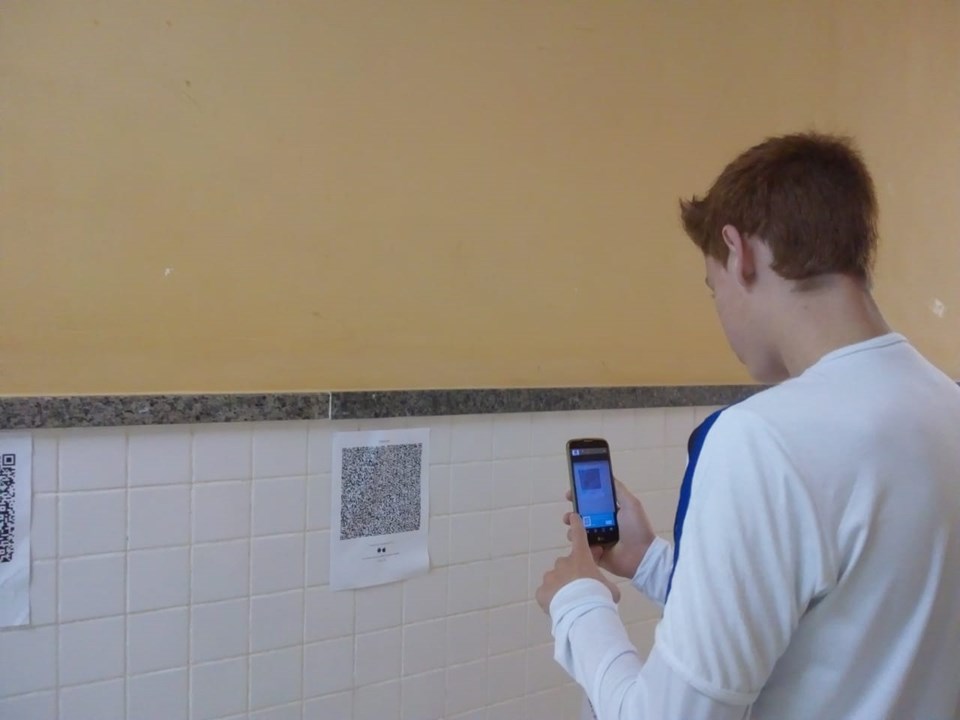 Os estudantes da Escola Abreu Alvim, de Afonso Cláudio, utilizaram a tecnologia para desenvolver atividades lúdicas no aprendizado da disciplina de Física. Os alunos escolheram os temas que trabalhariam e os transformaram em QR Codes. Com o material impresso e espalhado pela escola, os participantes da atividade foram estimulados a descobrir os temas dos colegas de classe.