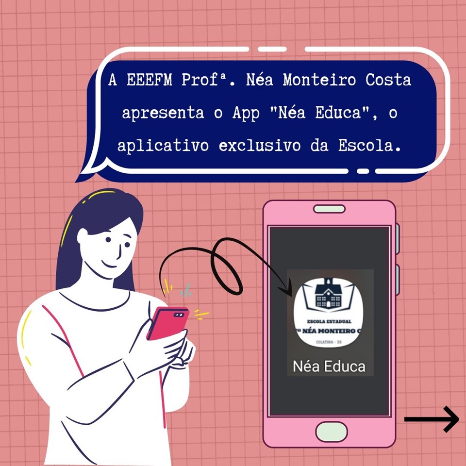 A Escola Estadual de Ensino Fundamental e Médio (EEEFM) Professora Néa Monteiro Costa, de Colatina, criou um aplicativo denominado “Néa Educa”. O App foi desenvolvido exclusivamente para a escola e conta com ferramentas de fomento à aprendizagem como dicas de estudos de todos os componentes curriculares, as produções audiovisuais como o podcast “Sociocast”, além das informações típicas da rotina do funcionamento da escola, como calendário letivo, cardápio do dia, link das redes sociais e os canais de comunicação e contato.