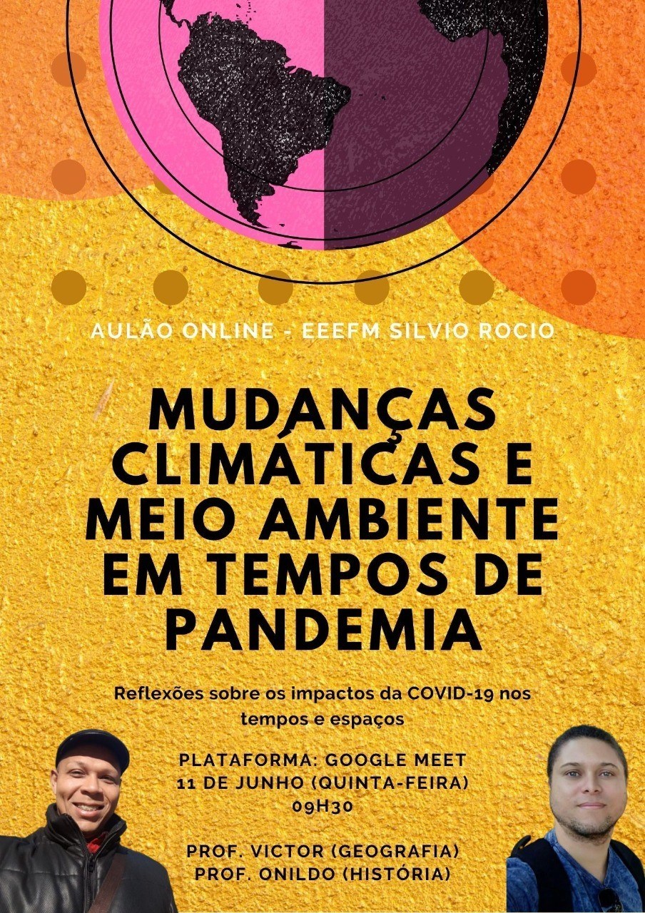 A Escola Estadual de Ensino Fundamental e Médio (EEEFM) Silvio Rocio, em Vila Velha, promove nesta quinta-feira (11), às 9h30, uma live com o tema “Mudanças climáticas em meio ambiente em tempos de pandemia”. O aulão de humanas será ministrado por professores de Geografia e História da unidade de ensino.