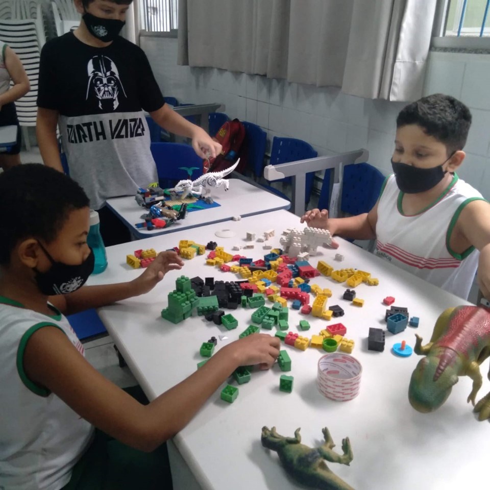 Os alunos produziram e expuseram desenhos autorais e releituras de filmes do assunto. Posteriormente, fizeram um mural e construíram dinossauros com peças de lego para serem apresentados à escola, fortalecendo a socialização dos alunos da AEE.