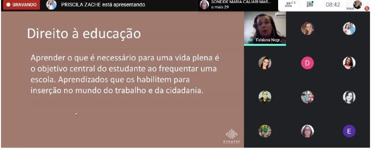 Uma das considerações pautadas no encontro foi a reflexão da garantia do direito de aprender de todos, bem como o entendimento de como os aspectos emocionais, assim como o acolhimento, interferem na aprendizagem.