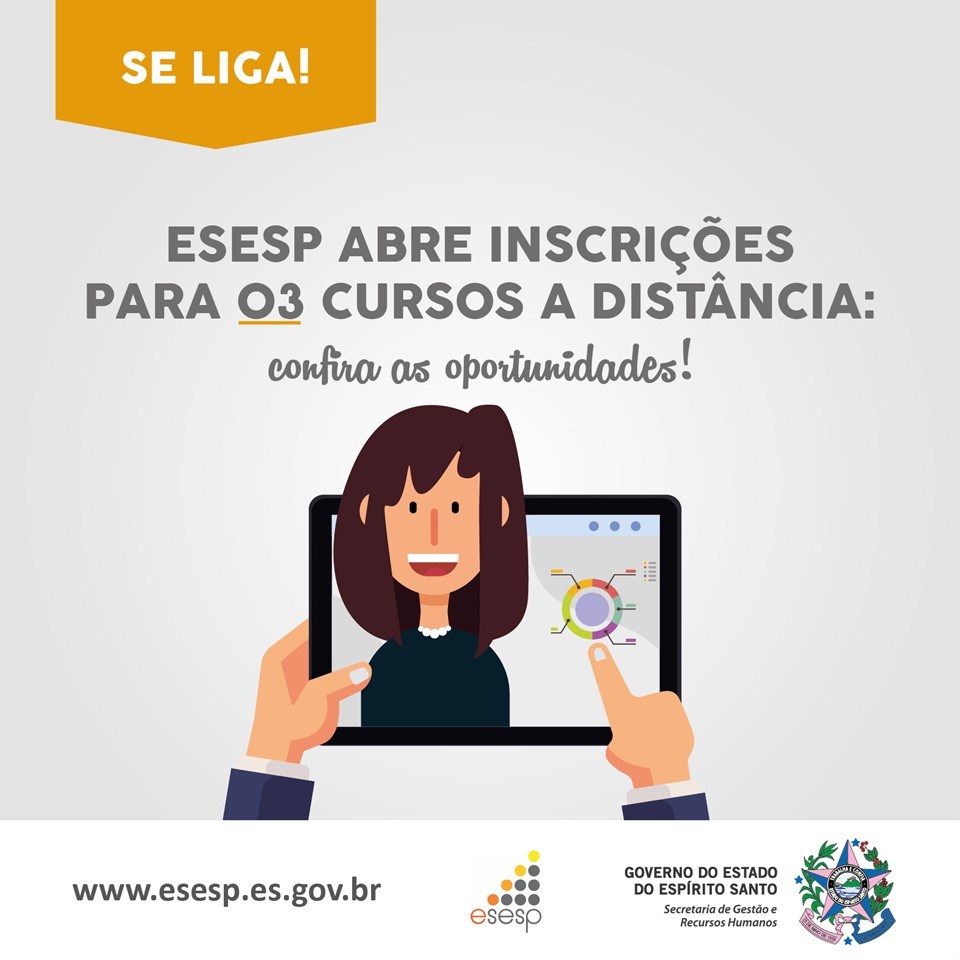 A Escola de Serviço Público do Espírito Santo (Esesp) abriu inscrições para três cursos realizados na modalidade de Educação a Distância (EAD) para o mês de setembro. As oportunidades são para capacitações em “Excel Básico”, “Direito Administrativo” e “Gestão Orientada para Resultados”.
