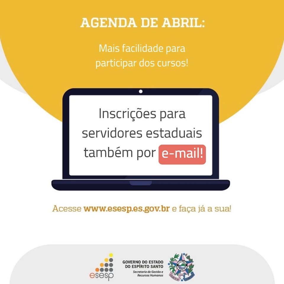 A Escola de Serviço Público do Espírito Santo (Esesp) decidiu permitir que servidores estaduais realizem, via e-mail, suas próprias inscrições para os cursos que serão ofertados pela instituição durante o mês de abril. A decisão tem como objetivo facilitar o acesso e a participação em atividades que contribuam com o desenvolvimento pessoal e profissional desses agentes.