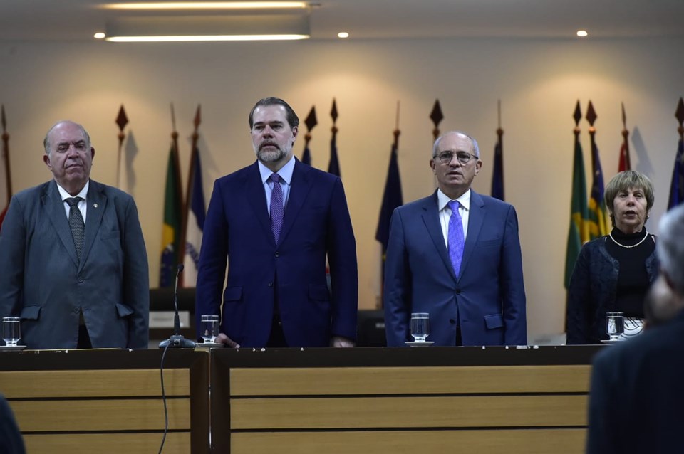 Nesta segunda-feira (10), o presidente do Supremo Tribunal Federal (STF) e do Conselho Nacional de Justiça (CNJ), ministro Dias Toffoli; o presidente do Tribunal de Justiça do Espírito Santo, desembargador Sérgio Luiz Teixeira Gama; e o governador Paulo Hartung participaram da solenidade de adesão do Estado ao projeto “Penas Inteligentes”, desenvolvido pelo CNJ.