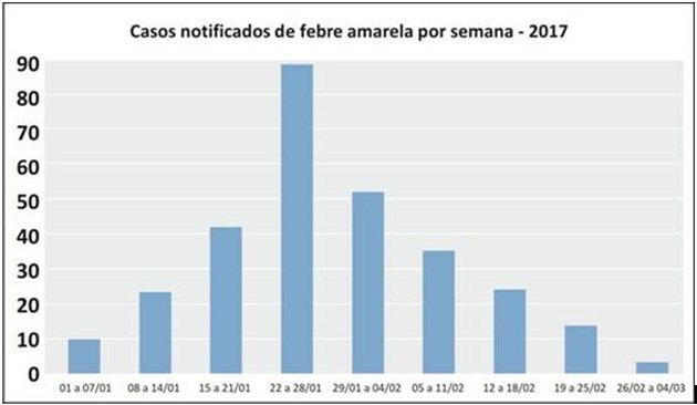 Este ano, até segunda-feira (06), a Secretaria de Estado da Saúde do Espírito Santo (Sesa) recebeu 260 notificações de suspeita de febre amarela. Trinta notificações foram descartadas. Do total de 230 casos, 80 foram confirmados para febre amarela silvestre, sendo que 20 casos evoluíram para óbito – Muniz Freire (03), Colatina (03), Ibatiba (02), Irupi (02), Itarana (02), Brejetuba (02), Laranja da Terra (01), Pancas (01), São Roque do Canaã (01), Afonso Cláudio (01), Conceição do Castelo (01) e Aracruz (01).