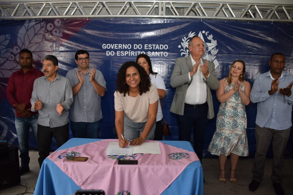 O Governo do Estado, por meio da Secretaria da Educação (Sedu), vai investir mais de R$ 1 milhão na construção da quadra poliesportiva e urbanização da Escola Estadual de Ensino Fundamental e Médio (EEEFM) Augusto de Oliveira, no distrito de Braço do Rio, em Conceição da Barra. A Ordem de Serviço foi assinada em solenidade na manhã desta sexta-feira (25) com a presença da vice-governadora Jaqueline Moraes e do superintendente Regional de Educação da Sedu, Thomas Pavão Rego.