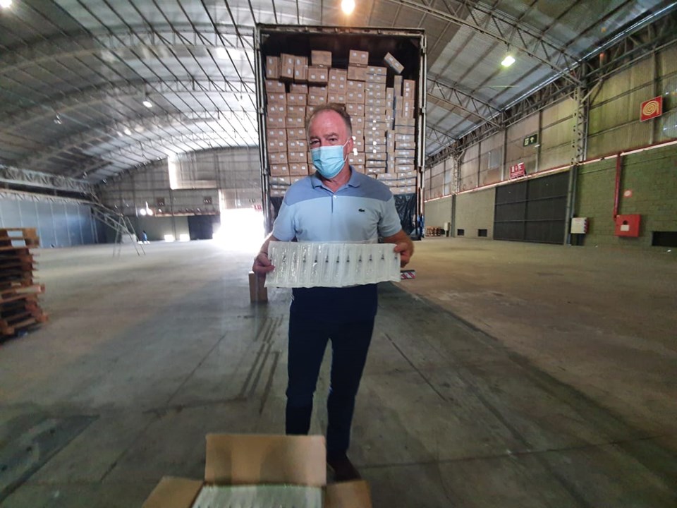 Chegou ao Estado na manhã deste sábado (16), a primeira remessa de 1,5 milhão de seringas que serão utilizadas para a imunização da população capixaba contra a Covid-19. O quantitativo faz parte de um total de 6 milhões de seringas adquiridas pelo Governo do Espírito Santo e que serão entregues de forma fracionada nas próximas semanas. O governador Renato Casagrande e o secretário de Estado da Saúde, Nésio Fernandes, estiveram presentes na entrega dos insumos.