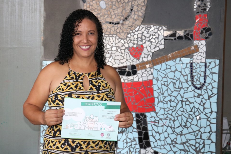 “Estou desempregada há quase cinco anos e hoje recebi meu certificado profissional de doceira. Agora posso ajudar o meu marido com as contas da casa.”