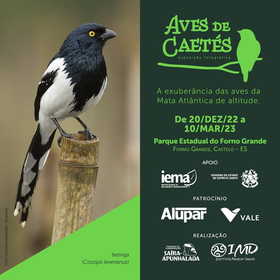 A exposição é realizada pelo Programa de Conservação da Saíra-Apunhalada e o Instituto Marcos Daniel (IMD), contando com o apoio do Instituto Estadual de Meio Ambiente e Recursos Hídricos (Iema). As fotos são de autoria de Gustavo Magnago e Gabriel Bonfá.