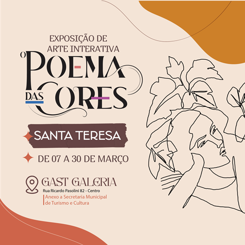 Local: Galeria de Arte de Santa Teresa (GAST), localizada na sede da Secretaria Municipal de Turismo e Cultura - Rua Ricardo Pasolini, 82, Centro, Santa Teresa.