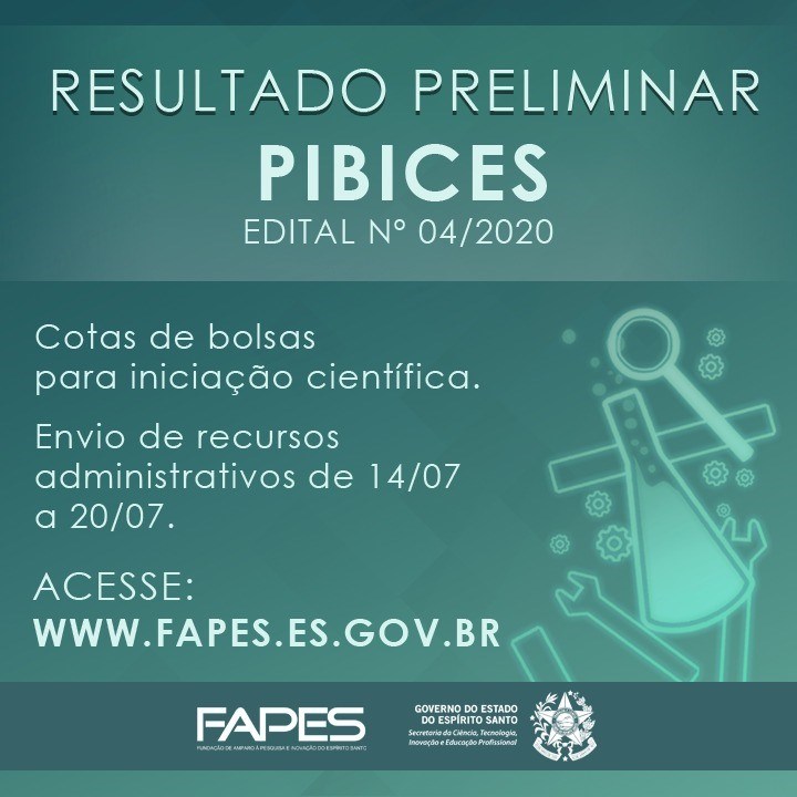 Resultado do Edital Fapes 04/2020 - Pibices 2020