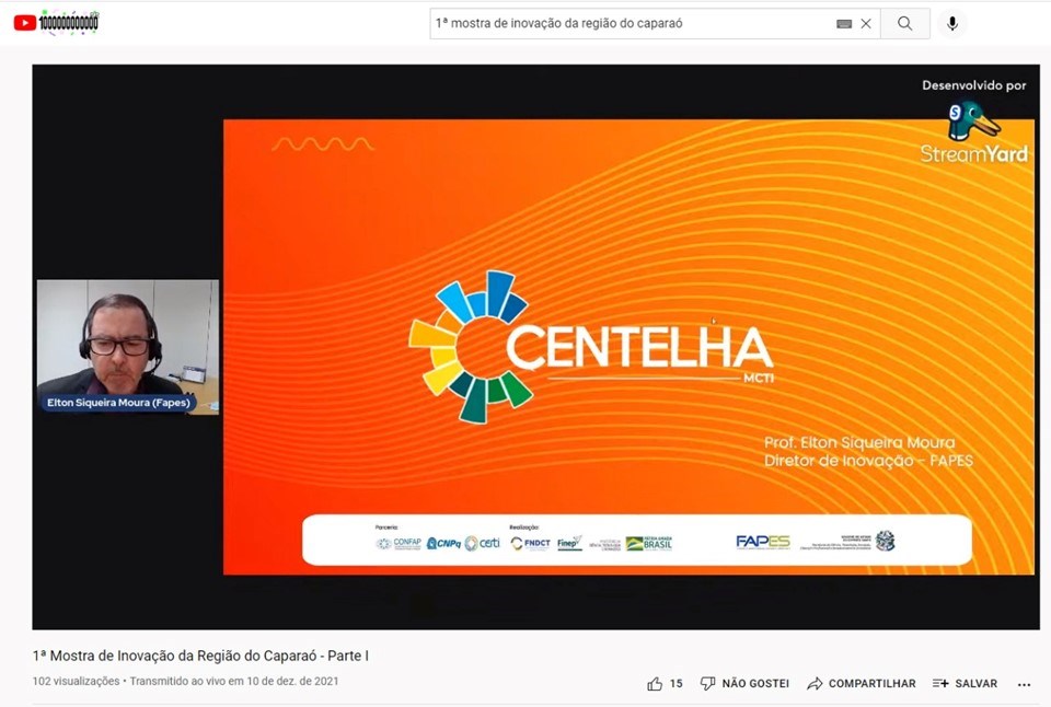 A Fundação de Amparo à Pesquisa e Inovação do Espírito Santo (Fapes) foi convidada para fazer parte da programação de palestras da 1ª Mostra de Inovação da Região do Caparaó, realizada pela Universidade Federal do Espírito Santo (Ufes) e pelo Instituto Federal do Espírito Santo (Ifes), na última sexta-feira (10), de forma virtual. Na ocasião, a Fapes divulgou a 2ª edição do Programa Centelha no Estado, que tem previsão de lançamento para janeiro de 2022.