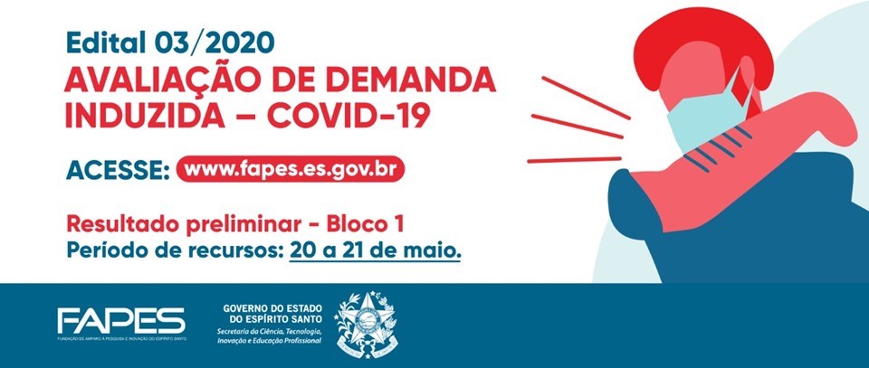 O Edital 03/2020 faz parte das ações desenvolvidas pelo Governo do Espírito Santo para controlar a disseminação da doença no Estado. A Fapes é autarquia vinculada à Secretaria da Ciência, Tecnologia, Inovação e Educação Profissional (Secti), que participa do Centro Integrado de Comando e Controle de Enfrentamento a Pandemia do Novo Coronavírus (Covid-19).
