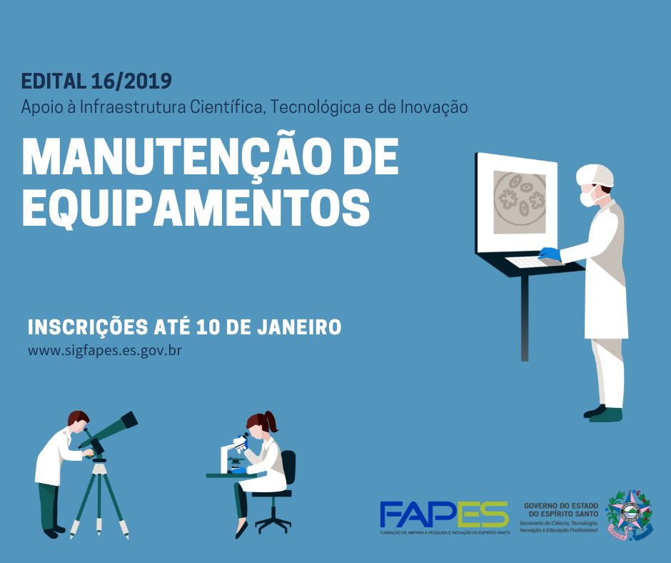 Edital Fapes 16/2019 - Apoio à Infraestrutura Científica, Tecnológica e de Inovação – Manutenção de Equipamentos