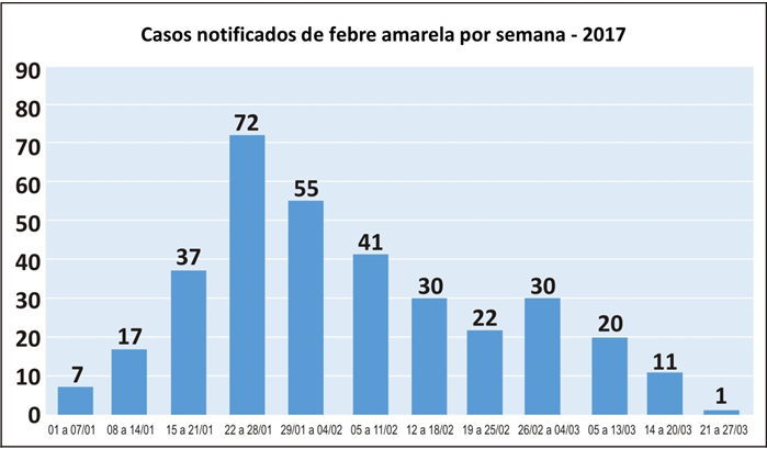 Este ano, até sexta-feira (24), a Sesa recebeu 344 notificações de suspeita de febre amarela. Setenta e três notificações foram descartadas. Do total de 271 casos, 115 foram confirmados para febre amarela silvestre, sendo que 37 casos evoluíram para óbito – Muniz Freire (05), Brejetuba (04), Colatina (04), Irupi (03), Ibatiba (02), Itarana (02), Laranja da Terra (02), Pancas (02), Afonso Cláudio (02), Conceição do Castelo (02), Domingos Martins (02), Santa Maria de Jetibá (02), São Roque do Canaã (01), Vargem Alta (01), Conceição da Barra (01), Cariacica (01) e Aracruz (01). Os óbitos atualizados são de casos anteriores, que tiveram a investigação concluída nesta data.