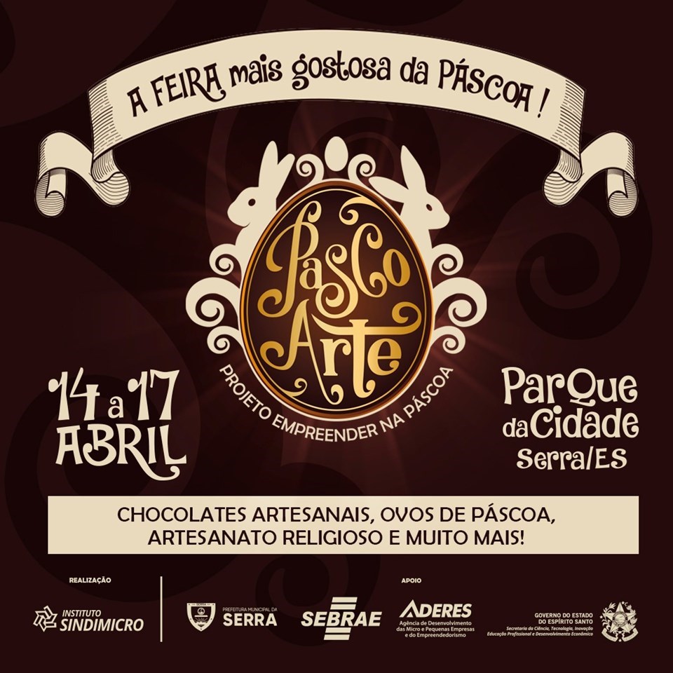 Tudo pronto para começar as Feiras Pascoarte, que serão realizadas nos municípios de Serra e Santa Teresa. Os eventos que contam com entrada gratuita e são voltados para a Páscoa, começam nesta quinta-feira (14) e seguem até domingo (17).