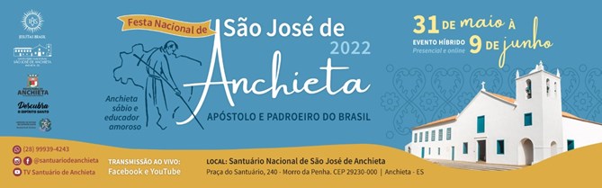 Dia 09 de junho é Dia de São José de Anchieta e, por conta disso, acontece no Santuário Nacional São José de Anchieta, localizado no município de Anchieta, a 85 quilômetros de Vitória, a Festa Nacional de São José de Anchieta. O evento vai ser realizado este ano de forma presencial e terá transmissões on-line pelas redes oficiais do Santuário.