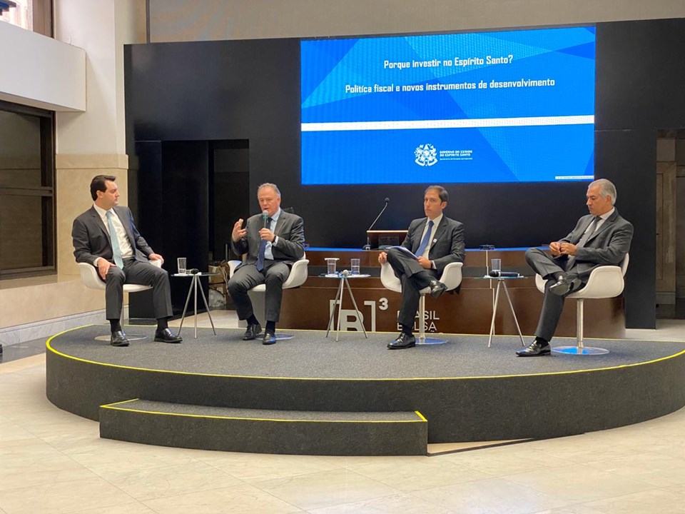 O governador Renato Casagrande apresentou, na manhã desta quarta-feira (27), os projetos de infraestrutura do Espírito Santo em evento na B3 (Bolsa de Valores), em São Paulo (SP). Ele falou sobre os investimentos realizados pelo Governo do Estado, além das iniciativas para a atração de investidores privados, como o Programa de Concessões e Parcerias do Estado (Parcerias ES). Os governadores Reinaldo Azambuja (Mato Grosso do Sul) e Ratinho Júnior (Paraná) também participaram do evento.