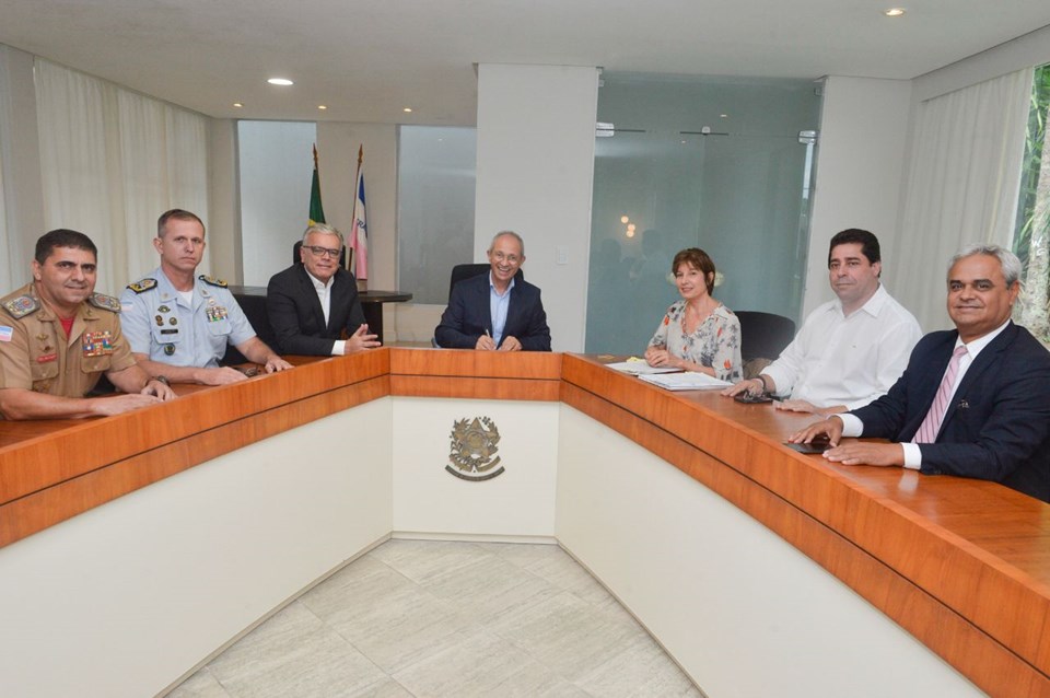 O secretário de Estado da Segurança Pública e Defesa Social, André Garcia; a secretária de Estado de Gestão e Recursos Humanos, Dayse Lemos; os comandantes-gerais da Polícia Militar e do Corpo de Bombeiros, coronéis Nylton Rodrigues e Marcelo D'Isep, respectivamente, participaram da assinatura.