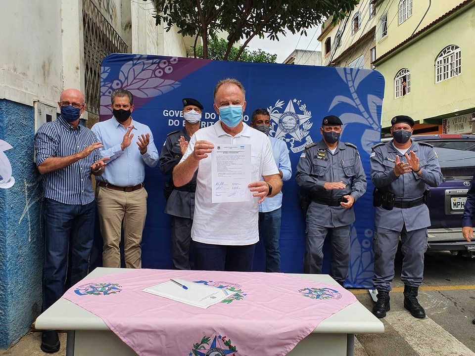 O governador do Estado, Renato Casagrande, esteve, na manhã deste sábado (07), em três companhias de Polícia Militar, onde assinou as ordens de serviço para a reforma das unidades, localizadas nos municípios da Serra e Vila Velha. As intervenções serão executadas pelo Departamento de Edificações e de Rodovias do Espírito Santo (DER-ES). As três obras representam, juntas, um montante de R$ 1,1 milhão em investimentos. A previsão é de que as intervenções sejam concluídas no primeiro semestre de 2021.