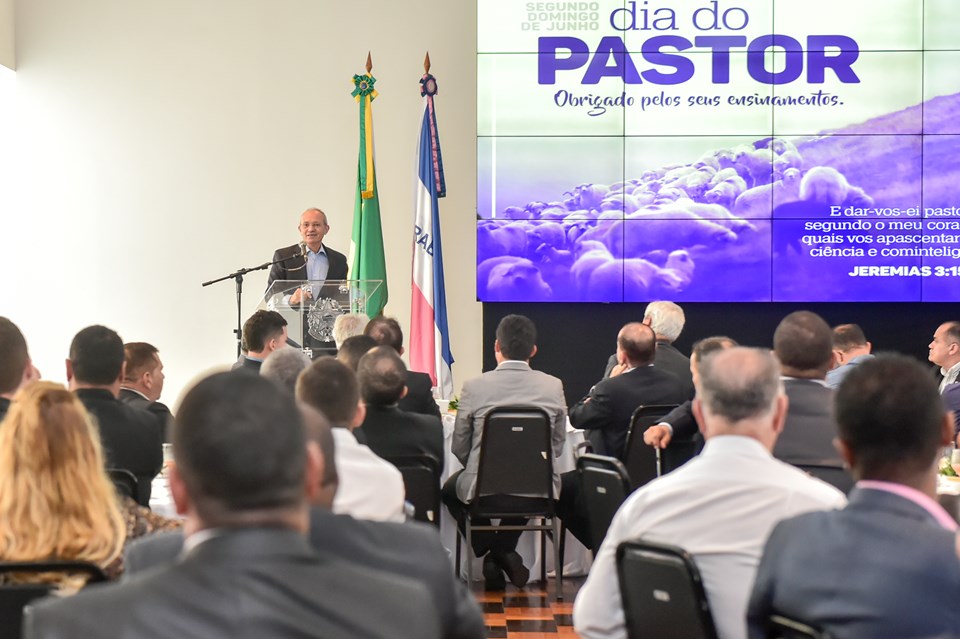 O governador Paulo Hartung apresentou nesta segunda (12), no Salão São Thiago, no Palácio Anchieta, em Vitória, a aproximadamente 200 pastores, a situação socioeconômica do país e do Espírito Santo. Na oportunidade, Hartung ressaltou a importância do trabalho voluntariado prestado pelas instituições religiosas em território capixaba. O encontro foi realizado em comemoração ao Dia do Pastor, data celebrada no segundo domingo do mês de Junho.