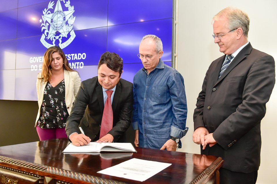 O governador Paulo Hartung e o vice-governador César Colnago empossaram, na manhã desta sexta-feira (17), Vanderson Alonso Leite, mais conhecido como Vandinho Leite, como novo secretário de Estado da Ciência, Tecnologia, Inovação e Educação Profissional. A solenidade de posse foi realizada no Salão São Tiago, no Palácio Anchieta, em Vitória.