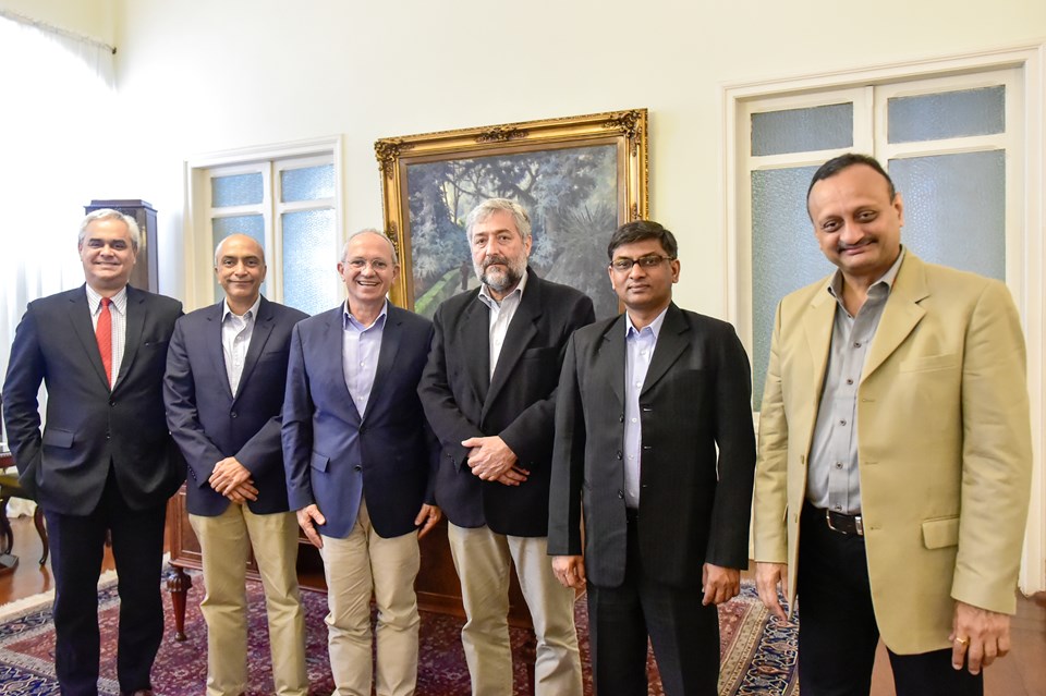 O governador Paulo Hartung recebeu, na manhã desta quinta-feira (20), uma comitiva com executivos de uma multinacional Indo-cingapuriana (Índia e Cingapura). A visita, que é reflexo dos contatos comerciais realizados por Hartung durante a visita a Cingapura no segundo semestre do ano passado, tem como objetivo apresentar aos potenciais investidores o parque industrial capixaba. O encontro foi realizado no gabinete do governador, no Palácio Anchieta, em Vitória.