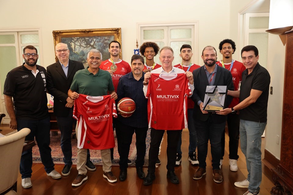 O encontro ocorreu no Palácio Anchieta, em Vitória, e contou também com a presença do secretário da Casa Civil, Júnior Abreu; do secretário de Estado de Esportes e Lazer, Nunes; e do presidente da Federação Capixaba de Basquete (Fecaba), Rogério Machado.