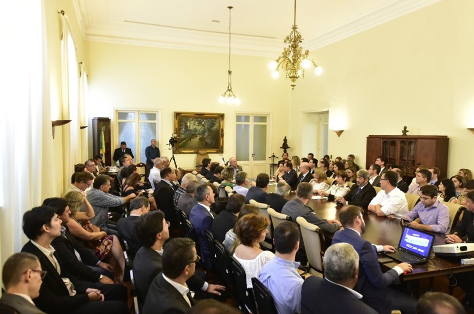 O governador Paulo Hartung reuniu, na manhã desta terça-feira (02), membros do secretariado, diretores de órgãos e empresas públicas estaduais. Na oportunidade, o governador anunciou que o Estado inicia o ano já executando a peça orçamentária prevista e aprovada pela Assembleia Legislativa para o exercício fiscal de 2018. Hartung também assinou decreto que flexibiliza o controle de custeio do Poder Executivo Estadual. O controle passa a ser descentralizado e feito pelos próprios Órgãos e Secretarias. A reunião de trabalho foi realizada no gabinete do governador, no Palácio Anchieta, em Vitória.