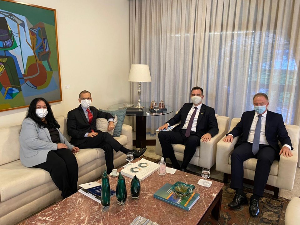 O governador do Espírito Santo, Renato Casagrande, se reuniu com o presidente do Senado Federal, Rodrigo Pacheco, na manhã desta segunda-feira (22), em Brasília (DF). O encontro tratou dos esforços coletivos para aquisição de novas doses da vacina contra o novo Coronavírus (Covid-19) e também sobre investimentos na malha ferroviária do Estado. Os senadores capixabas Rose de Freitas e Fabiano Contarato acompanharam a reunião.