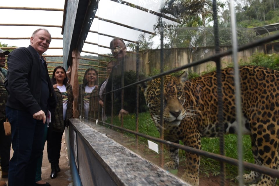 As primeiras onças-pintadas nascidas em cativeiro no Espírito Santo receberam uma visita especial neste sábado (7). O governador do Estado, Renato Casagrande, e a primeira-dama, Maria Virgínia Casagrande, estiveram no Zoo Park da Montanha, em Marechal Floriano, visitando os dois filhotes nascidos há 75 dias.