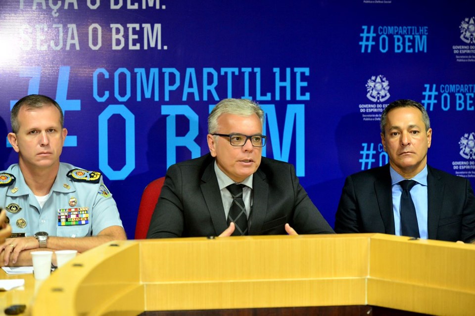 O Governo do Espírito Santo, por meio da Secretaria de Estado da Segurança Pública e Defesa Social (Sesp), divulgou, na manhã desta quarta-feira (21), o plano de contingência que será empregado a partir desta quinta-feira (22) nas regiões de divisa entre o Espírito Santo com Rio de Janeiro e Minas Gerais. O plano foi apresentado pelo secretário André Garcia, pelo comandante-geral da Polícia Militar, coronel Nylton Rodrigues, e pelo chefe de Polícia Civil, delegado Guilherme Daré. Drones e helicópteros também serão utilizados diariamente para o monitoramento.