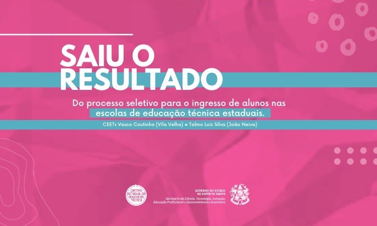 Foi divulgado, nesta terça-feira (06), o resultado do processo seletivo para ingresso de alunos nos cursos das escolas técnicas do Governo do Estado do Espírito Santo. Foram ofertadas 572 vagas em 12 opções de cursos profissionalizantes gratuitos para pessoas que já concluíram o Ensino Médio ou que estejam cursando o terceiro ano.