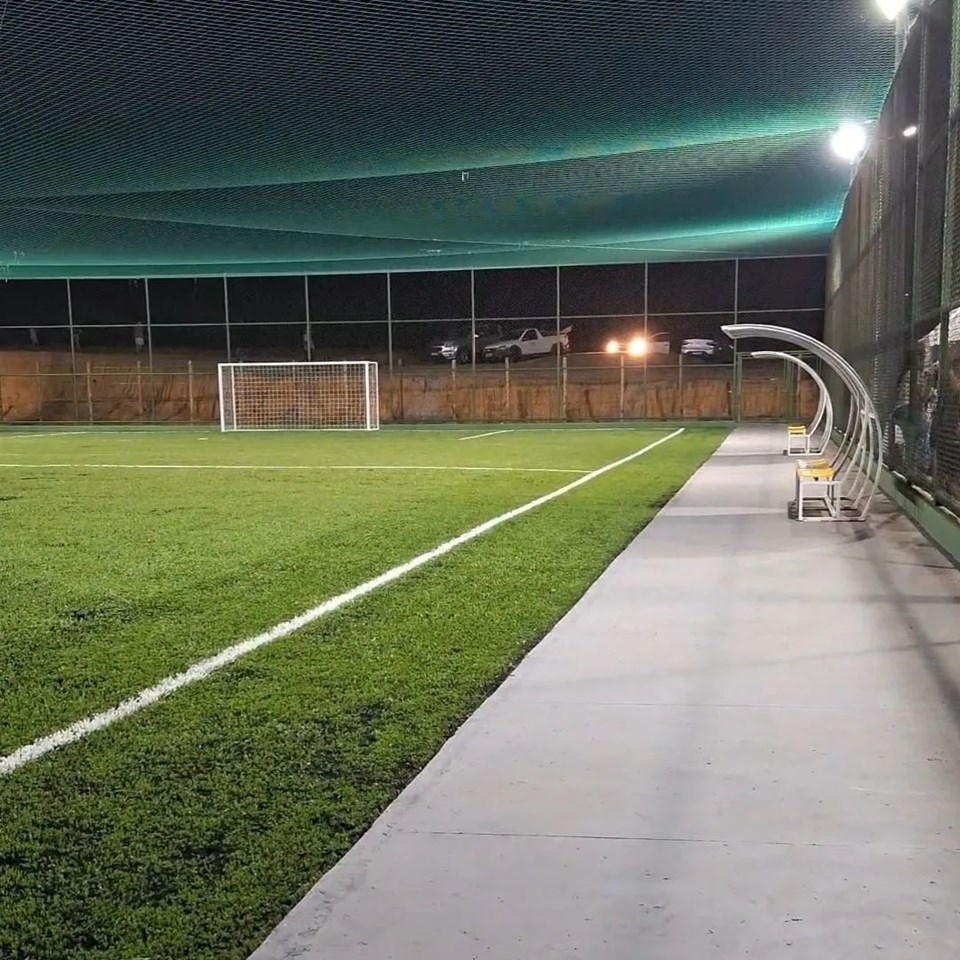 O campo Bom de Bola, em formato society, conta também com sistema de drenagem, área com piso cimentado para aquecimento dos atletas e bancos de reservas, fechamento com alambrado, com cinco metros de altura sobre alvenaria de blocos rebocada e pintada, e iluminação com seis postes de concreto, com três refletores cada.