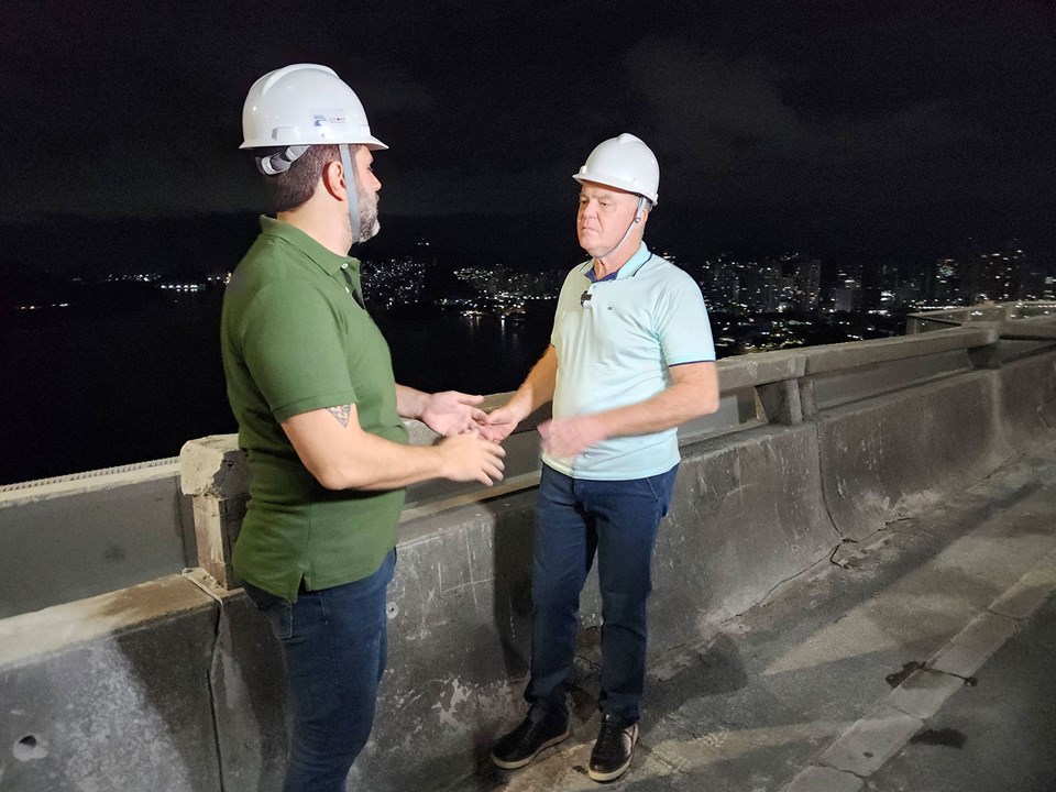 O governador do Estado, Renato Casagrande, visitou, na noite dessa quarta-feira (1º) as obras de ampliação da Terceira Ponte e de construção da Ciclovia da Vida. Casagrande acompanhou o início das atividades de retirada da atual mureta, fase final da obra que resultará no aumento de quatro para seis faixas destinadas aos veículos.