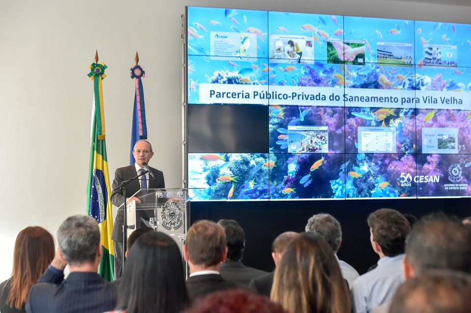 Nesta terça-feira (31), em solenidade no Palácio Anchieta, foi dado mais um passo para a universalização do sistema de esgotamento sanitário no Estado, com a assinatura de contrato de concessão administrativa com a empresa Vila Velha Ambiental, do Grupo Aegea, para ampliação, manutenção e operação do sistema de esgotamento sanitário de Vila Velha, na Região Metropolitana da Grande Vitória.