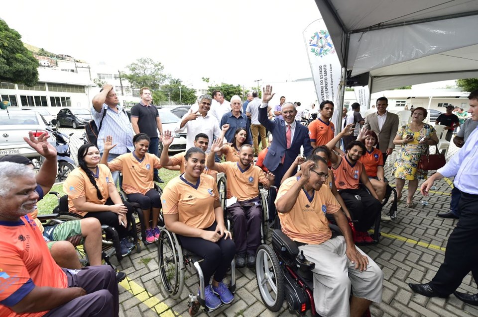 A Secretaria de Estado de Esportes e Lazer (Sesport), em Bento Ferreira, Vitória, viveu um dia de festa nesta quarta-feira (21). O governador Paulo Hartung esteve presente no local para a solenidade de entrega de materiais esportivos para os 64 municípios participantes do Campeonato Rural de Futebol Amador e de cadeiras de rodas a paratletas das modalidades atletismo, basquete e rúgbi.