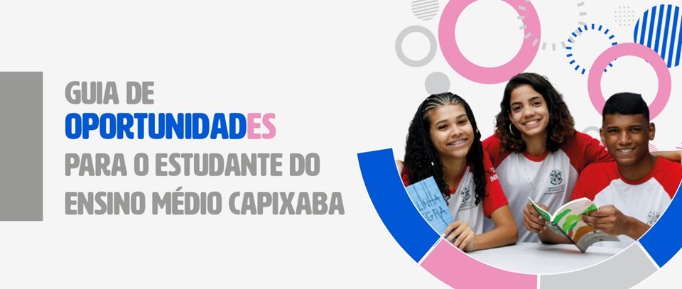 Acesse AQUI o "Guia de Oportunidades para o Estudante do Ensino Médio Capixaba" e confira as possibilidades ofertadas aos alunos da Rede Pública Estadual de Ensino do Espírito Santo.