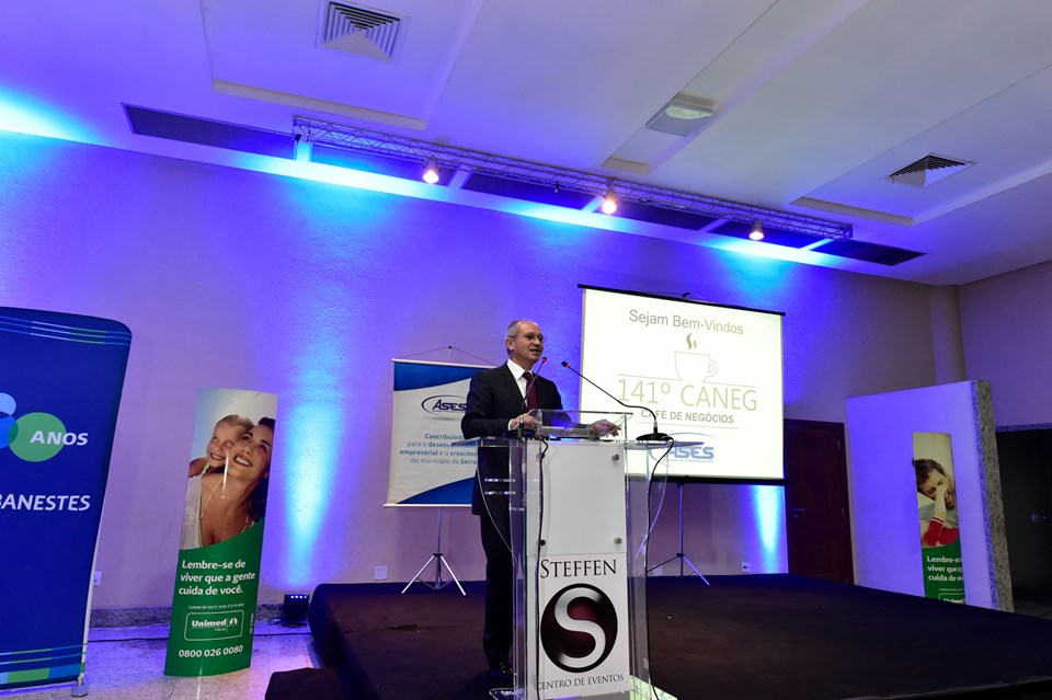 O governador Paulo Hartung afirmou que a crise institucional que ocorre em Brasília agrava a crise socioeconômica que o país vivência atualmente, com mais de 12 milhões de brasileiros desempregados e queda nas receitas públicas. A análise de Paulo Hartung foi apresentada, nesta quarta-feira (07), em palestra realizada durante o Café de Negócios promovido pela Associação dos Empresários da Serra (Ases). O encontro teve como tema "Os desafios da gestão e inovação em tempos de crise". Hartung falou aos empresários e lideranças da região sobre austeridade fiscal, prioridades do Governo e indicadores de desempenho que tornaram o Espírito Santo referência nacional em gestão e educação pública. O evento reuniu lideranças empresariais no Cerimonial Steffen, em Serra.