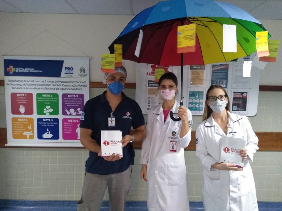 Entre as atividades estava a “chuva de segurança”, um jogo de perguntas e respostas, em que os questionamentos foram afixados em um guarda-chuva. Na ocasião, os profissionais abordados pelos membros da Comissão de Segurança do Paciente retiravam uma das perguntas, focadas nas seis metas internacionais de Segurança do Paciente: identificar corretamente o paciente; melhorar a comunicação entre os profissionais de saúde; melhorar a segurança na prescrição, no uso e na administração dos medicamentos; assegurar cirurgia em local de intervenção, procedimentos e pacientes corretos; higienizar as mãos para evitar infecções; e reduzir o risco de quedas e úlceras por pressão.