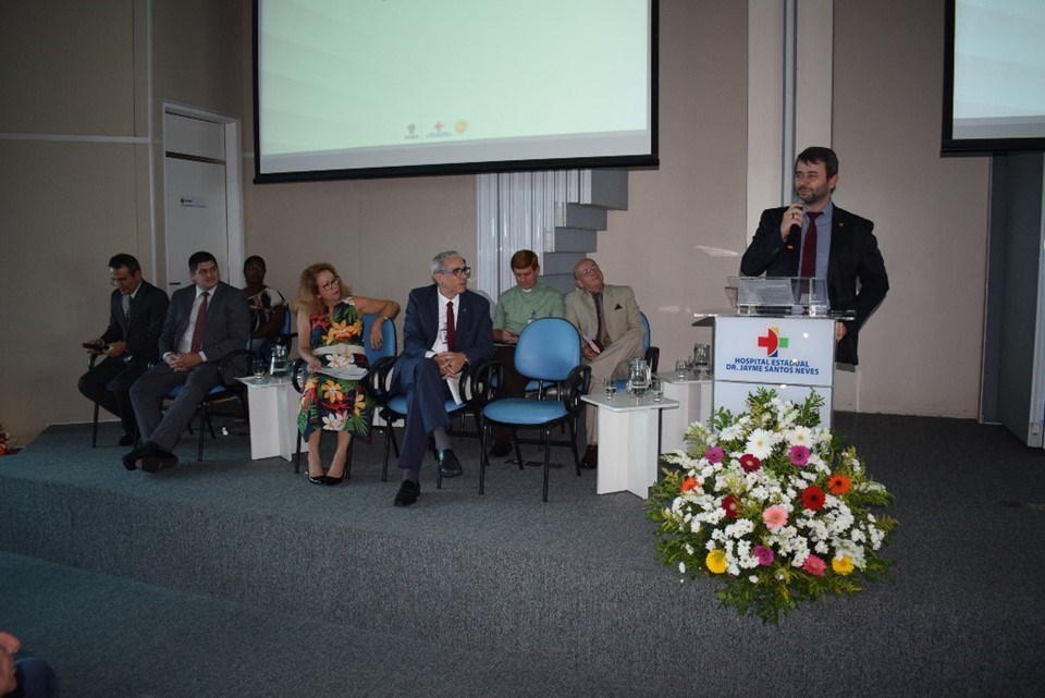 O aniversário de seis anos de funcionamento do Hospital Estadual Dr. Jayme Santos Neves, na Serra, foi comemorado, nesta quarta-feira (27), com um culto em ação de graças. Com o auditório cheio, o secretário de Estado da Saúde, Nésio Fernandes, ressaltou o trabalho de cada profissional: “A gente atende um por um e não tem dimensão do todo, mas vocês podem voltar para casa, todos os dias, orgulhosos do que fazem aqui. Vocês fazem a obra acontecer”, destacou.