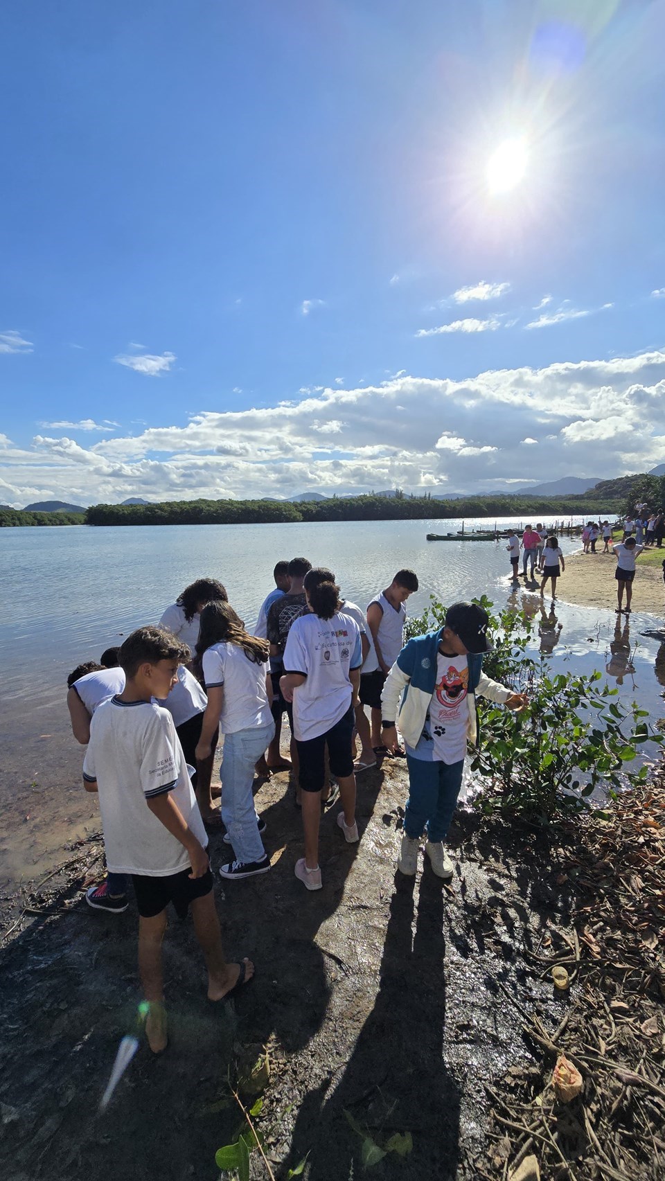 O ponto alto da atividade foi a visita guiada ao manguezal, onde as crianças puderam conhecer de perto o ecossistema único, observando suas características, fauna e flora, e entendendo sua relevância ecológica, social e econômica.