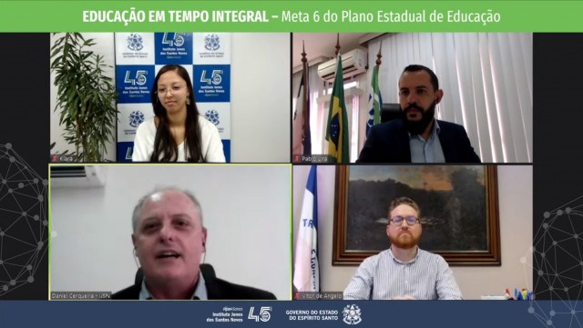 O Instituto Jones dos Santos Neves (IJSN) e a Secretaria da Educação (Sedu) apresentaram, na tarde dessa terça-feira (18), a Nota Técnica “Educação em Tempo Integral - Meta 6 do Plano Estadual de Educação”, em transmissão ao vivo pelo Youtube. O evento contou com a presença do diretor-presidente do IJSN, Daniel Cerqueira e do secretário de Estado da Educação, Vitor de Angelo.