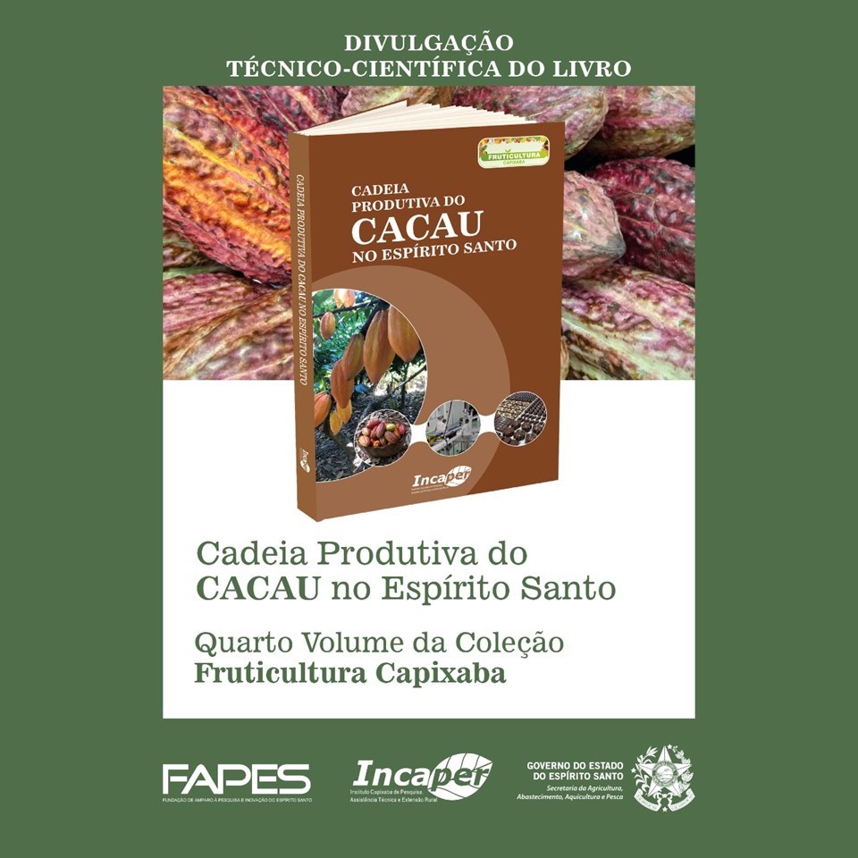 O Governo do Estado, por meio do Instituto Capixaba de Pesquisa, Assistência Técnica e Extensão Rural (Incaper), disponibiliza o estudo da Cadeia Produtiva do Cacau no Espírito Santo, na 4ª edição da Coleção Fruticultura Capixaba. A coleção contempla as principais cadeias produtivas da fruticultura no Estado e os volumes já publicados estão disponíveis na Biblioteca Rui Tendinha.