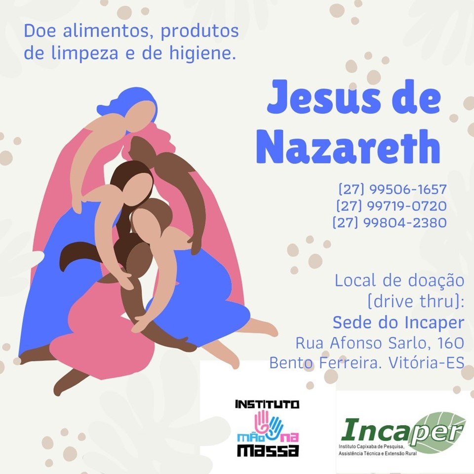 A Sede do Instituto Capixaba de Pesquisa, Assistência Técnica e Extensão Rural (Incaper), em Vitória, está recebendo doações para ajudar os moradores carentes do bairro Jesus de Nazareth, também na Capital. Podem ser doados alimentos não perecíveis, produtos de limpeza e de higiene pessoal.