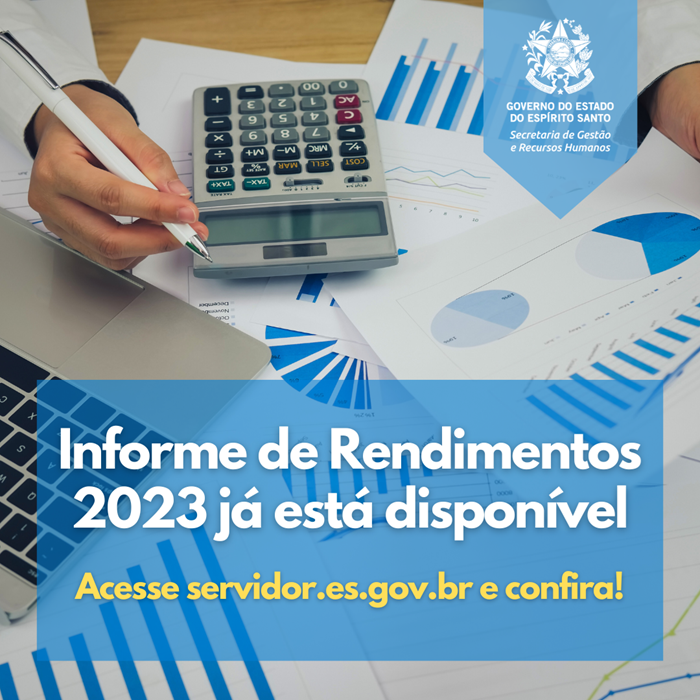 Para conferi-lo, basta acessar o portal www.servidor.es.gov.br, efetuar o login com o número do CPF e senha do sistema Acesso Cidadão, clicar no menu “Financeiro”, selecionar a opção “Comprovante de Rendimentos” e escolher o ano de 2023.