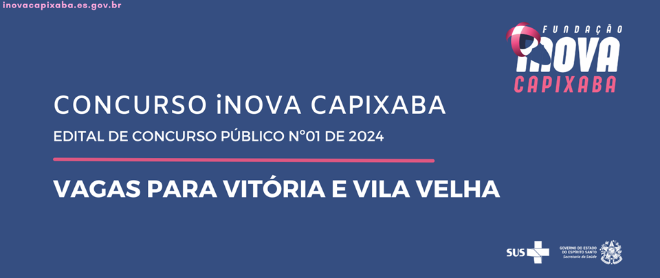 A Fundação Estadual de Inovação em Saúde – iNOVA Capixaba anuncia a abertura do concurso público iNOVA Capixaba 001/2024. O certame visa a atender à necessidade de contratação de pessoal para preencher as vagas disponíveis em unidades hospitalares sob a gestão da Fundação: o Hospital Estadual Central (HEC) e o Hospital Antônio Bezerra de Faria (HABF).