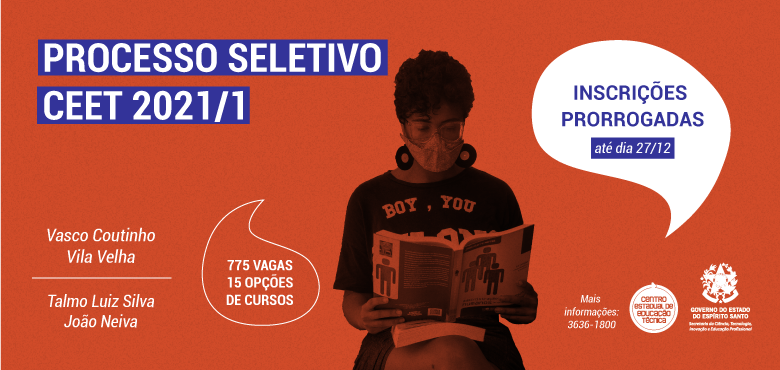 Se você já concluiu o Ensino Médio ou conclui em 2020 e quer fazer um curso técnico totalmente gratuito, essa é sua chance. As inscrições para estudar nos Centros Estaduais de Educação Técnica (CEETs) foram prorrogadas para até o dia 27 de dezembro. São 775 vagas dividas nas escolas Talmo Luiz Silva, em João Neiva, e Vasco Coutinho, em Vila Velha. O processo seletivo é referente ao primeiro semestre de 2021.