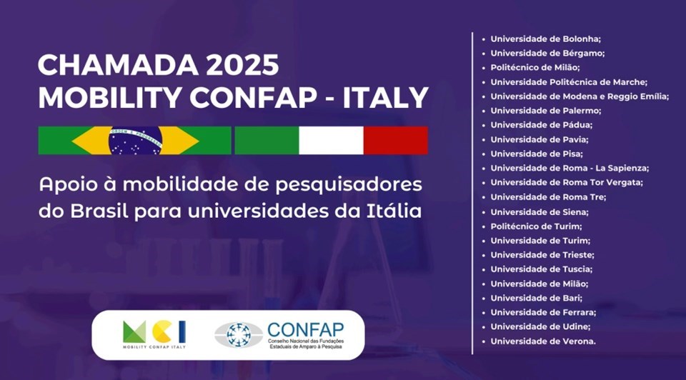 Um dos objetivos da Fundação de Amparo à Pesquisa e Inovação do Espírito Santo (Fapes) é promover a internacionalização da pesquisa científica, tecnológica e de inovação produzida no Espírito Santo. Neste mês de fevereiro, a Fapes aderiu à chamada MCI - Mobility Confap Italy 2025, de apoio à mobilidade de pesquisadores do Brasil para universidades da Itália, lançada pelo Conselho Nacional das Fundações Estaduais de Amparo à Pesquisa (Confap).